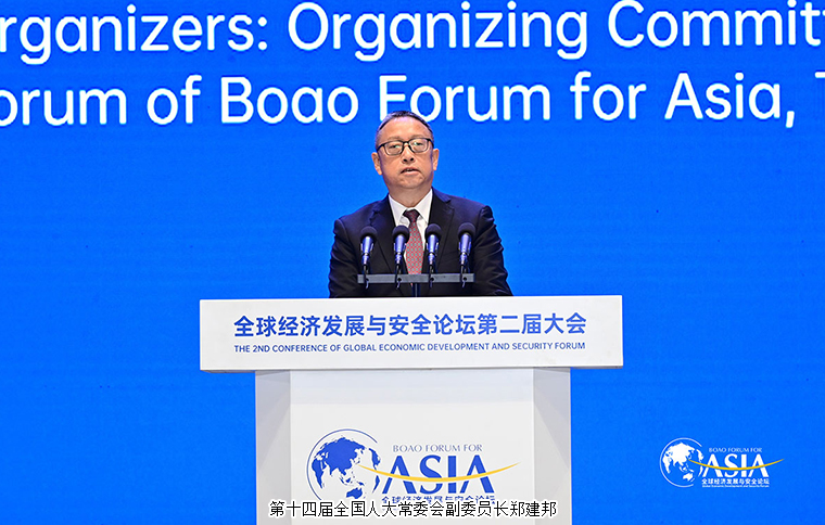 第十四屆全國人大常委會副委員長鄭建邦代表中國政府在開幕大會上致辭。鄭建邦說,當(dāng)前世界進入新的動蕩變革期,正在經(jīng)歷大調(diào)整、大分化、大重組,安全問題的外延不斷拓展,同發(fā)展問題的聯(lián)系更加緊密。習(xí)近平主席先后提出全球發(fā)展倡議和全球安全倡議,在國際社會引起積極反響。中方主張進一步落實全球發(fā)展倡議和全球安全倡議,共同促進全球發(fā)展與安全,共同樹牢合作共贏理念。他指出,中國反對將發(fā)展議題政治化、安全問題擴大化,希望切實探索合作共贏的路徑,推動發(fā)展問題重回國際議程核心,加快落實聯(lián)合國2030年可持續(xù)發(fā)展議程。反對“脫鉤斷鏈”,希望建設(shè)開放型世界經(jīng)濟,以正當(dāng)競爭促進全球交流合作,使科技創(chuàng)新為世界共同發(fā)展與安全賦能,為各國人民最大福祉謀利益;完善保障合作共贏機制,構(gòu)建團結(jié)、平等、均衡、普惠的全球發(fā)展伙伴關(guān)系,推動形成各國政府和國際組織協(xié)同、非政府組織參與的安全治理格局。中國將堅持安全和發(fā)展并重,統(tǒng)籌應(yīng)對傳統(tǒng)與非傳統(tǒng)領(lǐng)域的安全威脅,在努力維護自身發(fā)展與安全的同時,積極致力于促進世界的共同發(fā)展與安全,不斷推動構(gòu)建人類命運共同體。