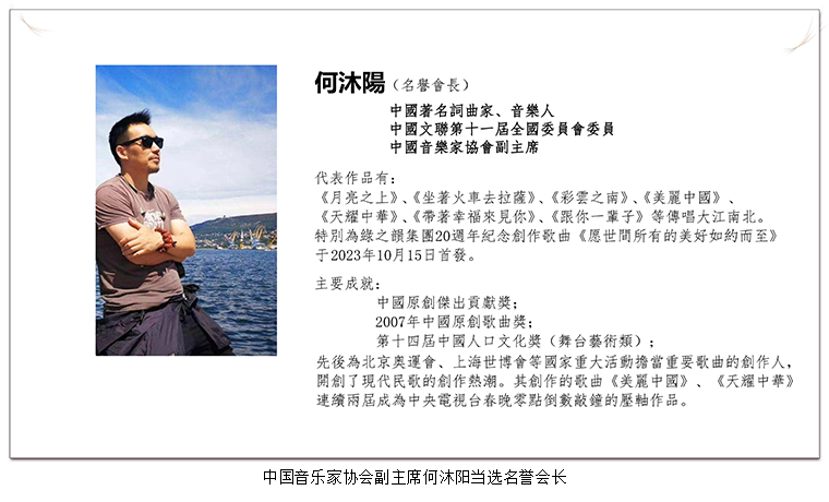 中國音樂家協(xié)會副主席何沐陽當(dāng)選香港長沙聯(lián)誼會第二屆名譽會長