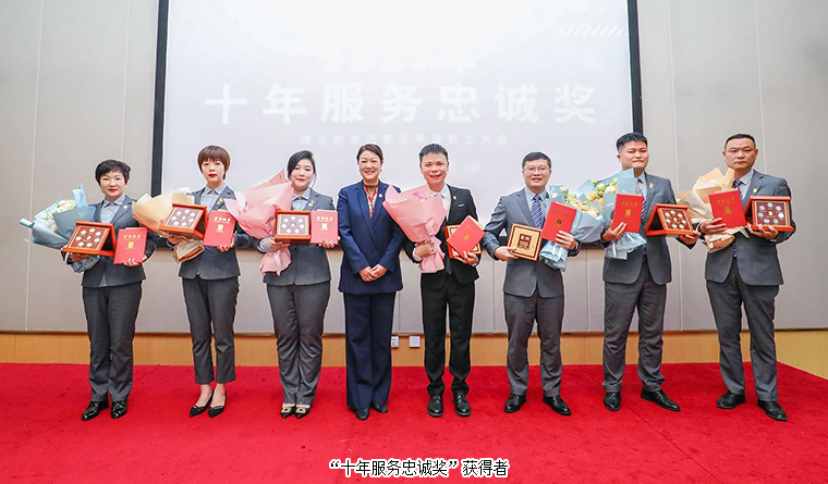 青春因磨礪而出彩,生命因奮斗而升華。在綠之韻有這樣一群人,他們堅(jiān)守崗位,練就強(qiáng)硬本領(lǐng);他們兢兢業(yè)業(yè),盡職盡責(zé);他們緊跟領(lǐng)導(dǎo)思想步伐,譜寫著綠之韻的春華秋實(shí),以向上的力量激勵(lì)不斷向前。為表彰先進(jìn)、樹立良好的榜樣,在萬眾期待下,公司為李思、張艷琴、梁淑琳、王壯、董進(jìn)、張宇航、周芳、黃茜、謝芬、羅瓊蕾頒發(fā)了“杰出青年人才獎”;為董進(jìn)、謝芬、周鈺青、周繼武、虞曉娟、李軍、楊應(yīng)平、朱妹芳、羅永帥頒發(fā)了“五年服務(wù)英才獎”;為張雅麗、程瑤、尹天弈、楊邢軒、賀煒、張智皓、顏洋頒發(fā)了“十年服務(wù)忠誠獎”。綠之韻集團(tuán)總裁勞嘉、常務(wù)副總裁胡均安分別為獲獎員工頒發(fā)獎?wù)屡c榮譽(yù)證書,并致以熱烈祝賀。“五年服務(wù)英才獎”代表董進(jìn)和“十年服務(wù)忠誠獎”代表賀煒分別發(fā)表獲獎感言,栩栩講述他們與綠之韻之間的動人故事。