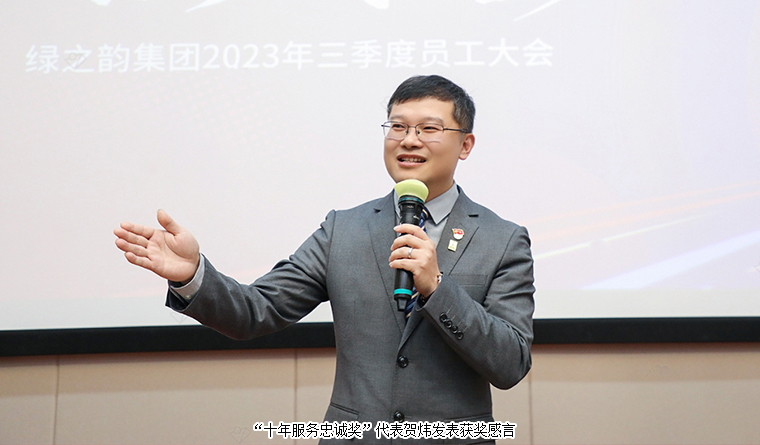 在全場熱烈的掌聲和萬眾矚目中,綠之韻集團(tuán)胡國安董事長發(fā)表重要講話。他再次對全體員工的努力和付出表示肯定,對第三季度所有獲獎員工致以衷心祝賀,并對獲獎員工給予期許,希望大家能發(fā)揮才干,為公司向前發(fā)展提供動力。他表示,綠之韻成立二十年,經(jīng)歷無數(shù)艱辛曲折,收獲了質(zhì)的飛躍與發(fā)展。20歲的綠之韻擁有積極向上、創(chuàng)新求變的精神力量,希望大家繼續(xù)發(fā)揚(yáng)綠之韻精神,堅(jiān)持為用戶提供有價(jià)值的產(chǎn)品和服務(wù)不改變;為員工提供收獲成長的價(jià)值不改變;為社會合作伙伴創(chuàng)造價(jià)值不改變。他提出了三點(diǎn)寄望,一是希望所有綠之韻人可以躬身入局、親力親為;二是成為真正為公司解決問題的人;三是希望所有人都有降本增效、化繁為簡的能力,可以對結(jié)果負(fù)責(zé)。未來,期待所有綠之韻人永懷感恩之心,積極參與公司發(fā)展建設(shè),同頻共振、同舟共濟(jì)、共同成長。相信在綠之韻這棵大樹之下,所有的福氣都會如綠蔭,庇護(hù)著所有綠之韻人,讓綠之韻蓬勃健康發(fā)展,我們現(xiàn)在唯一要做的就是最好的自己,所有一切美好必將如約而至!