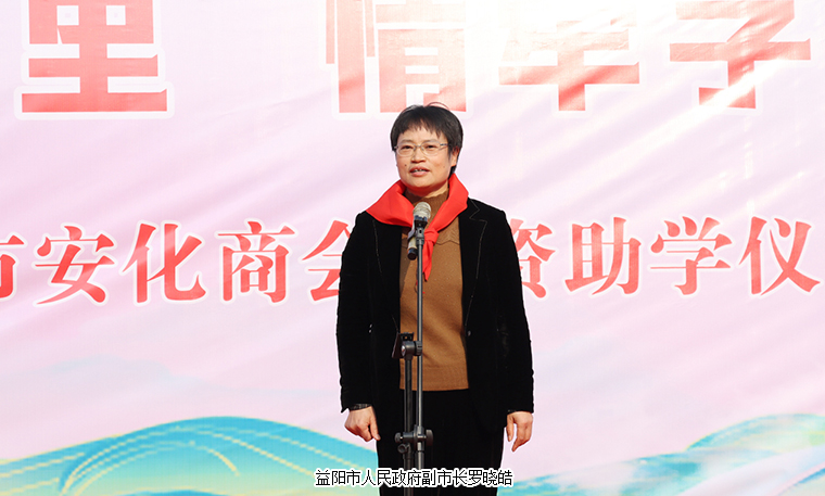 活動最后,益陽市人民政府副市長羅曉皓講話。她首先代表益陽市委、市政府向長沙市安化商會的愛心企業(yè)家表示崇高的敬意和衷心的感謝。參加此次活動,她深受感染和觸動,一是感恩家鄉(xiāng)山山水水、父老鄉(xiāng)親的養(yǎng)育,感恩母校的培育,讓我擁有了走出大山的機會;二是感謝各位企業(yè)家在今年經(jīng)濟形勢下行的情況下,克服困難,慷慨解囊,走進大山資助山村教育;三是希望家鄉(xiāng)興旺發(fā)達,希望安化的教育事業(yè)蒸蒸日上,希望有更多的人才扎根山村教育,培根育苗播種,希望同學們心懷夢想、發(fā)奮讀書,以期未來建設(shè)家鄉(xiāng),回報社會。
