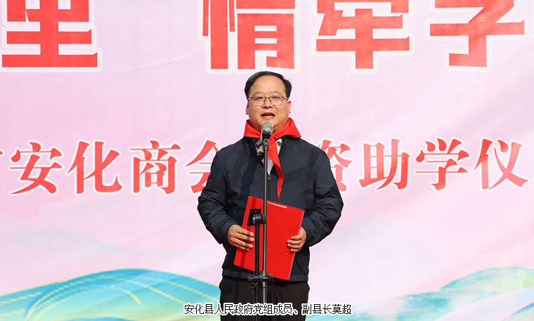 安化縣人民政府黨組成員、副縣長莫超表示,近年來縣委縣政府始終把教育作為重中之重的民生,始終把教育事業(yè)擺在優(yōu)先發(fā)展位置,以辦人民滿意的教育為宗旨,緊緊圍繞打造區(qū)域教育強縣目標,完善機制、加大投入、優(yōu)化資源,有力推動了全縣教育事業(yè)持續(xù)健康發(fā)展。但是,安化地處山區(qū),仍然有相當一部分農(nóng)村偏遠學校教育教學設(shè)施待改善,優(yōu)質(zhì)師資力量急需補充。在政府部門著力部署解決的同時,社會各界人士也紛紛向我們伸出援助之手,捐資助學。今天長沙市安化商會的愛心企業(yè)家們慷慨解囊為我縣馬路鎮(zhèn)蒼場完小送來校服、體育器材和資金支持。這種善舉,用實際行動在全社會倡導了尊師重教的良好風尚,也充分體現(xiàn)了從安化走出去的企業(yè)家們情寄安化、心系教育的桑梓情懷。希望在座的各位同學要珍惜擁有、懂得感恩。在現(xiàn)在與將來,要始終保持謙虛謹慎、端正積極、奮發(fā)向上的態(tài)度,勤學苦練、刻苦學習,用優(yōu)異的成績回報愛心企業(yè)的資助,并將這份大愛傳遞下去。
