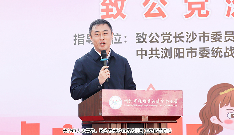 活動(dòng)最后,致公黨長(zhǎng)沙市委專職副主委彭磊講話。他首先代表致公黨長(zhǎng)沙市委會(huì)向中共瀏陽(yáng)市委統(tǒng)戰(zhàn)部,瀏陽(yáng)市教育局和張坊鎮(zhèn)對(duì)本次活動(dòng)給予的大力支持表示衷心的感謝,向致公黨瀏陽(yáng)市工委成功舉辦此次助學(xué)活動(dòng)表示熱烈祝賀,向洞溪完小的師生們致以親切問(wèn)候,向愛心企業(yè)綠之韻集團(tuán)致以崇高的敬意。他向大家分享了三點(diǎn)感受:一是致公有為,致公助學(xué)是我們致公黨全省五大工作品牌之一,也是社會(huì)服務(wù)的一個(gè)公眾品牌。近年來(lái)我們?yōu)g陽(yáng)市工委積極開展“同心護(hù)花開·一起向未來(lái)”助學(xué)活動(dòng),持續(xù)擦亮“致公助學(xué)”公益品牌。二是黨員有愛。胡國(guó)安董事長(zhǎng)是一位致公黨黨員,同時(shí)也是一位成功的企業(yè)家,更是有口皆碑的慈善家,近年來(lái)積極帶領(lǐng)企業(yè)承擔(dān)社會(huì)責(zé)任,感恩回饋社會(huì)。他號(hào)召在座各位能夠發(fā)動(dòng)身邊的人,積極參與到“致公助學(xué)”活動(dòng)中來(lái),共同呵護(hù)孩子健康成長(zhǎng),照亮學(xué)子成才之路。三是未來(lái)有光。希望受資助的困難學(xué)生能夠常懷感恩之心,刻苦學(xué)習(xí)、積極進(jìn)取,自強(qiáng)不息,成為一個(gè)心中有夢(mèng),眼中有光,腳下有路,真正成長(zhǎng)為我們中華民族偉大復(fù)興的棟梁之材。