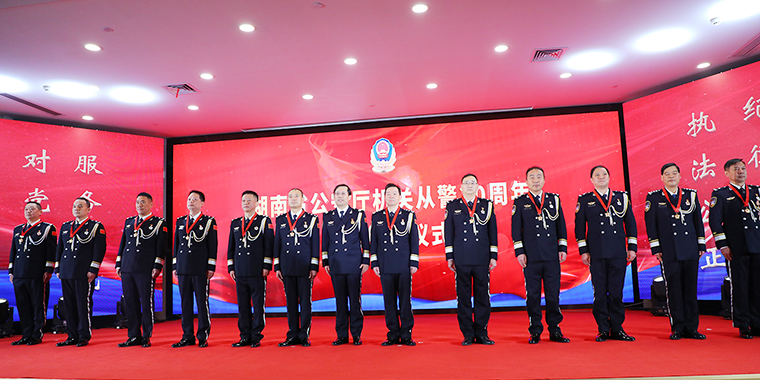 為熱烈慶祝第四個中國人民警察節(jié),2024年1月10日,湖南省公安廳機關(guān)隆重舉行升警旗儀式等系列活動,湖南省人民政府副省長、省公安廳廳長王一鷗出席儀式、領(lǐng)誓重溫公安機關(guān)人民警察誓詞。湖南省公安廳黨委副書記、常務(wù)副廳長周賽保,湖南省委政法委委員、政治部主任黎池,省委宣傳部二級巡視員楊勇,民建湖南省委會二級巡視員龍冬林等領(lǐng)導參加會議。全體在家廳領(lǐng)導,一、二級巡視員(警務(wù)專員、警務(wù)技術(shù)總監(jiān))、省廳各總隊總隊長、駐廳紀檢監(jiān)察組、廳屬各單位班子成員參加。湖南省公安廳黨風政風警風監(jiān)督員、中國國際商會湖南商會副會長、綠之韻集團董事長胡國安等受邀參加活動。