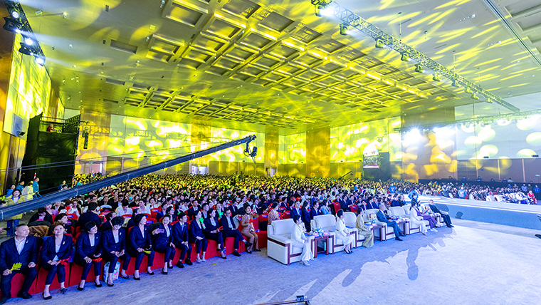 我們站在前所未有的時(shí)代,在奔流不息中翻涌向前,五載春秋的堅(jiān)守與信任,讓幸福這張名片成為經(jīng)典。在現(xiàn)場(chǎng)最為熱烈的掌聲中,綠之韻集團(tuán)董事長(zhǎng)胡國(guó)安上臺(tái)講話。他首先向大會(huì)現(xiàn)場(chǎng)以及通過(guò)在線互動(dòng)視頻觀看本次大會(huì)盛況的綠之韻家人致以熱烈的歡迎和誠(chéng)摯的問(wèn)候,并向每一位獲獎(jiǎng)?wù)咧乱詿崃业淖YR。他說(shuō)道,每一年的九月我都會(huì)去東莞的工廠,這幾年我發(fā)現(xiàn)東莞的工廠變化非常大,跟集團(tuán)公司從150平米發(fā)展到如今規(guī)模,非常相似,東莞的工廠在建立之初,面積非常小,在楊總、駱總的帶領(lǐng)下,實(shí)現(xiàn)了巨大的飛躍。剛才夏總告訴我,我們的產(chǎn)品獲得了40多項(xiàng)專利,還是幾十項(xiàng)在申報(bào)中。綠之韻幸福國(guó)際的這五年,非常不容易,從小到大,從無(wú)到有,成就了無(wú)數(shù)幸福的家庭,讓工廠一步步壯大,讓市場(chǎng)一步步壯大,成為行業(yè)傳頌的佳話,為你們點(diǎn)贊!剛才在臺(tái)上看到這么多幸福代言人受到表彰和獎(jiǎng)勵(lì),為你們高興,為你們驕傲!每天晨起最讓我幸福的一件事情是為幸福代言人發(fā)送的朋友圈動(dòng)態(tài)點(diǎn)贊??吹侥銈?yōu)槭袌?chǎng)付出的身影,看到你們?yōu)閳F(tuán)隊(duì)解決矛盾時(shí)的身影,看到你們?cè)诼糜沃锌鞓?lè)的分享,看到你們?cè)谥κ袌?chǎng)發(fā)展中的分享,為你們加油!我相信,更加深信,2024綠之韻的未來(lái),你們?cè)谙目偧肮芾韴F(tuán)隊(duì)的帶領(lǐng)下一定會(huì)再創(chuàng)新高,我們要善于發(fā)現(xiàn)美好,創(chuàng)造美好,把美好帶給每一個(gè)家庭,世間美好,一定會(huì)如約而至。