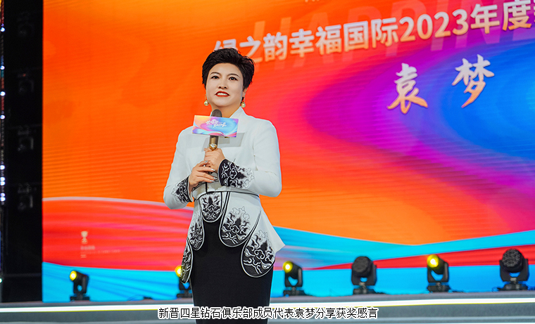 璀璨鉆石,光芒萬(wàn)丈;不忘初心,榮耀前行。鉆石的光輝,映襯著披星戴月的身影;鉆石的閃耀,照亮著篳路藍(lán)縷的奮斗。他們是萬(wàn)千幸福代言人學(xué)習(xí)的楷模,他們是幸福國(guó)際蓬勃發(fā)展的中流砥柱,他們是推動(dòng)幸福國(guó)際向前發(fā)展的堅(jiān)實(shí)力量,在通往幸福的征途上,帶領(lǐng)團(tuán)隊(duì)和伙伴一路高歌猛進(jìn),斗志昂揚(yáng)。綠之韻集團(tuán)常務(wù)副總裁胡均安,綠之韻集團(tuán)市場(chǎng)營(yíng)銷(xiāo)中心總經(jīng)理戴三省,綠之韻集團(tuán)運(yùn)營(yíng)中心執(zhí)行總經(jīng)理、綠之韻國(guó)際商學(xué)院常務(wù)副院長(zhǎng)陳敏,綠之韻健康專家委員會(huì)專家委員、綠之韻幸福國(guó)際市場(chǎng)商學(xué)院院長(zhǎng)侯俊霞,綠之韻集團(tuán)市場(chǎng)運(yùn)營(yíng)中心市場(chǎng)業(yè)務(wù)總監(jiān)喻鳴鸞,綠之韻集團(tuán)市場(chǎng)運(yùn)營(yíng)中心市場(chǎng)業(yè)務(wù)總監(jiān)譚紅分別為綠之韻幸福國(guó)際2023年度新晉一星、二星、三星、四星鉆石俱樂(lè)部成員頒發(fā)榮譽(yù)。在原一星、二星、三星、四星鉆石俱樂(lè)部成員的見(jiàn)證與陪伴下,獲獎(jiǎng)代表杜淑琴、曹福林、許月華、劉顯良、袁夢(mèng)分享獲獎(jiǎng)感言。