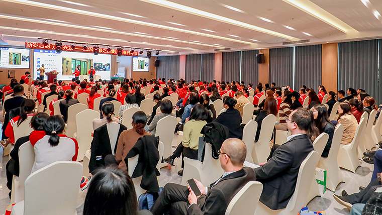 在全場(chǎng)學(xué)員的熱烈掌聲中,胡國(guó)安董事長(zhǎng)作重要講話。他首先代表集團(tuán)公司向這三天為大家傾心授課的各位老師表示衷心的感謝和崇高的敬意,向主動(dòng)積極參加培訓(xùn)的學(xué)員們致以親切的問(wèn)候。他表示,二十年來(lái)綠之韻始終把“弘揚(yáng)優(yōu)秀文化和打造學(xué)習(xí)型企業(yè)”作為企業(yè)文化系統(tǒng)的一個(gè)重要組成部分和企業(yè)管理的核心要素,努力為全體員工搭建專業(yè)化的成長(zhǎng)通道和具有幸福感的工作環(huán)境。公司投資20億元興建的綠之韻中心項(xiàng)目已經(jīng)全面進(jìn)入裝修階段,即將投入使用。胡國(guó)安董事長(zhǎng)進(jìn)一步表示,每年的開(kāi)年訓(xùn),既是一次學(xué)習(xí)會(huì),也是一次動(dòng)員會(huì),希望參加本次開(kāi)年訓(xùn)的各位學(xué)員都可以真正做到學(xué)以增知、學(xué)以致用、學(xué)以修身,在學(xué)習(xí)中進(jìn)步,在進(jìn)步中成長(zhǎng),逐步成長(zhǎng)為家人的驕傲和同事的榜樣,實(shí)現(xiàn)自己不同人生階段的夢(mèng)想。剛才我們對(duì)2024年集團(tuán)工作計(jì)劃進(jìn)行了宣講,希望各子公司、各個(gè)部門(mén)、各位員工認(rèn)真學(xué)習(xí)貫徹年度計(jì)劃,快速進(jìn)入工作狀態(tài),成為團(tuán)隊(duì)中的“任意牌”,放到哪個(gè)崗位都可以發(fā)揮作用。在未來(lái)的工作中,大家也要將服務(wù)意識(shí)和團(tuán)隊(duì)精神貫穿到各個(gè)層面,積極主動(dòng)服務(wù)市場(chǎng)、服務(wù)企業(yè)、服務(wù)團(tuán)隊(duì)、服務(wù)部門(mén)。要崇尚創(chuàng)新,善于用創(chuàng)新的思路,創(chuàng)造性地發(fā)現(xiàn)、解決和處理好工作中遇到的各種問(wèn)題。要注重細(xì)節(jié),把每一件簡(jiǎn)單的事做好,就是不簡(jiǎn)單的;把每一件平凡的事做好,就是不平凡的。他強(qiáng)調(diào),今年是集團(tuán)“五五規(guī)劃”的開(kāi)局之年,讓我們以此次開(kāi)年訓(xùn)為新起點(diǎn),堅(jiān)定信心,腳踏實(shí)地,推動(dòng)集團(tuán)公司平穩(wěn)向前發(fā)展。最后,他祝愿本次培訓(xùn)取得圓滿成功,祝愿2024所有的美好正在發(fā)生。