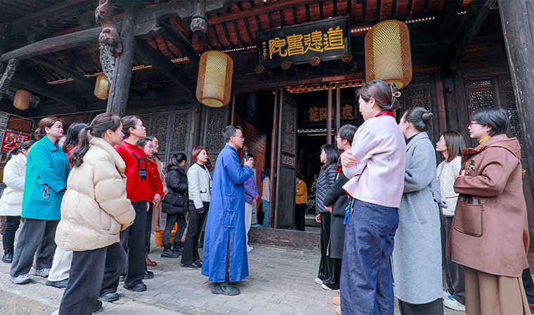 任重道遠(yuǎn),道不遠(yuǎn)人。道遠(yuǎn)書院是從江西高安按照一比一比例搬遷過來修繕的嘉慶年間的古宅,歷史悠久,古色古香,底蘊(yùn)蔚然。在老師的講解下,綠之韻的女神們一同進(jìn)入匠心園,重溫孔氏家訓(xùn),領(lǐng)悟中華文化,感受儒家文化氛圍,在經(jīng)典國學(xué)中洗禮身心感受愉悅,提升自我。通過實(shí)地參觀及詳細(xì)解說,全體女員工對儒家文化有了更全面的認(rèn)識和了解。隨后,大家走進(jìn)道遠(yuǎn)書院,學(xué)習(xí)并完成了傳統(tǒng)禮儀“盥手禮”和“拜孔禮”?!疤斓厣n蒼,乾坤茫茫,紅日初升,其道大光......”在領(lǐng)隊老師的誦讀中,大家端身立正,扶手高揖,以至誠、感恩、恭敬之心向大成至圣先師孔老夫子行四鞠躬禮,沉浸式感受和學(xué)習(xí)了中國優(yōu)秀傳統(tǒng)文化。在幽靜禪意的院落中,綠之韻的女神們穿越時空,問道先賢,與心靈對話,感受這份內(nèi)心的崇敬與澄澈。