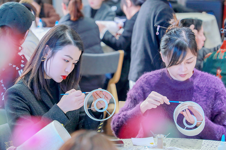 裊裊清姿藏蕙質(zhì),錚錚傲骨蘊(yùn)巧心。我國作為具有五千多年歷史的文明古國,每一個傳統(tǒng)手工藝都是中華文化的瑰寶,值得我們?nèi)鞒泻捅Wo(hù)。在手工制作活動中,綠之韻的女神們踴躍參與,在專業(yè)老師的示范指導(dǎo)下,大家興致盎然,邊學(xué)邊做,展現(xiàn)了精工巧手,體驗(yàn)了壓花、湘繡和纏花技藝,制作了古風(fēng)發(fā)簪、刺繡掛件和壓花臺燈等傳統(tǒng)古風(fēng)手工藝品,一件件清雅別致的作品讓人賞心悅目。完成制作后,大家相互展示欣賞,并進(jìn)行了拍照留念,記錄下這美好瞬間,在感受美、欣賞美、創(chuàng)造美的過程中獲得了滿滿的儀式感和成就感。