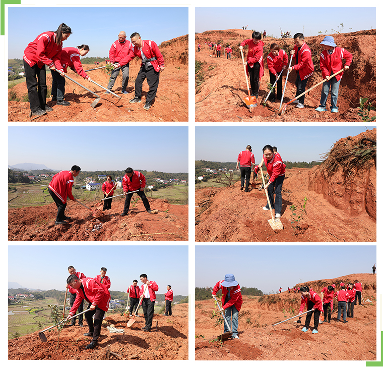 春風(fēng)吐綠、草木初萌。到達(dá)洞陽(yáng)鎮(zhèn)義務(wù)植樹(shù)基地后,林業(yè)站易申海站長(zhǎng)為大家講解了種植的步驟和要點(diǎn),綠之韻的黨員同志們?cè)趯W(xué)習(xí)了種樹(shù)的相關(guān)知識(shí)后,斗志昂揚(yáng),擼起袖子,以飽滿的狀態(tài)、實(shí)干的精神投入到植樹(shù)活動(dòng)中,揮鍬鏟土、扶苗培土,有條不紊完成每道工序,齊心協(xié)力栽種下一棵棵樹(shù)苗,確保栽一棵活一棵,植一片綠一方。綠之韻國(guó)際大酒店黨支部書(shū)記胡均安現(xiàn)場(chǎng)指導(dǎo)大家栽種技巧和方法,并表示,這不僅是一次植樹(shù)造林的黨日活動(dòng),更是一次綠色發(fā)展的宣傳教育。通過(guò)開(kāi)展植樹(shù)節(jié)主題黨日活動(dòng),綠之韻的黨員同志們充分展現(xiàn)了勇?lián)厝蔚南蠕h模范作用,發(fā)揮了共產(chǎn)黨員的團(tuán)隊(duì)合作精神,以實(shí)際行動(dòng)爭(zhēng)當(dāng)新時(shí)代“綠水青山就是金山銀山”理念的傳播者和踐行者,共同為建設(shè)美麗瀏陽(yáng)增綠添彩。