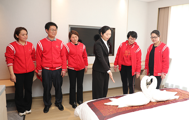 植樹(shù)活動(dòng)結(jié)束后,大家來(lái)到了綠之韻國(guó)際大酒店,在服務(wù)人員的講解下,對(duì)消防安全設(shè)施、功能布局、配套設(shè)施、文化植入、裝修用材進(jìn)行詳細(xì)了解,對(duì)主樓的大廳、廊道、商務(wù)中心、客房房間布局、房型配比等進(jìn)行了實(shí)地參觀。這是綠之韻國(guó)際大酒店提質(zhì)改造后接待的首次主題黨日活動(dòng)參觀,方便的設(shè)施、周到的服務(wù),讓在場(chǎng)的黨員同志紛紛點(diǎn)贊。綠之韻國(guó)際大酒店于2005年由綠之韻集團(tuán)投資建成,是一家集商務(wù)、會(huì)議、度假于一體的現(xiàn)代綜合型酒店。酒店設(shè)有總統(tǒng)套房、各類型客房及溫馨公寓共203間,同時(shí)配套中餐廳、多功能國(guó)際宴會(huì)廳,商務(wù)中心、精品商店等服務(wù)。酒店以先進(jìn)齊全的設(shè)施,綠色環(huán)保的環(huán)境,“家”的服務(wù)理念,為全球來(lái)到綠之韻總部的家人提供貼心和溫暖的服務(wù),滿足消費(fèi)者的多元化需求。