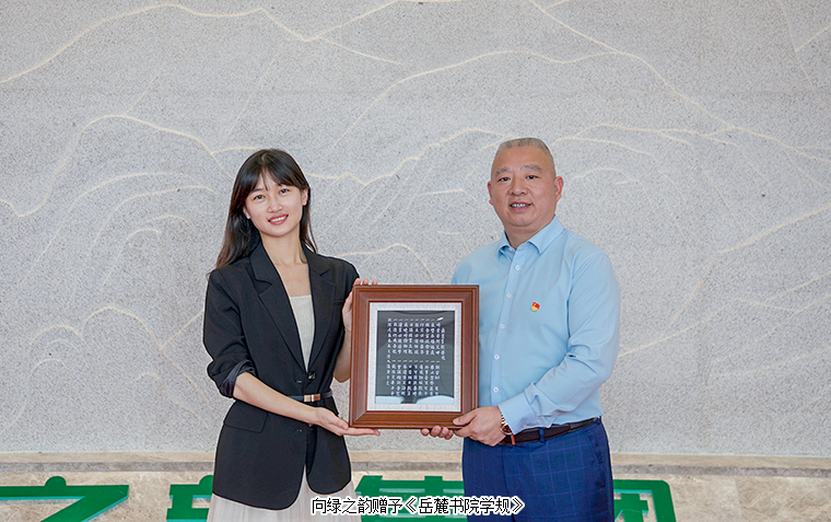 座談會(huì)上,胡均安常務(wù)副總裁對(duì)毛老師和同學(xué)們的到來表示熱烈歡迎。梅其慧常務(wù)副總經(jīng)理作主題分享,并對(duì)同學(xué)們提出的“綠之韻的企業(yè)發(fā)展理念”“人才管理培養(yǎng)體系”“企業(yè)文化建設(shè)”等方面問題,一一予以詳盡解答。毛老師和同學(xué)們紛紛表示,在綠之韻人的眼睛里看到了光,這是對(duì)公司企業(yè)文化的認(rèn)同感,也是綠之韻堅(jiān)持企業(yè)培訓(xùn)和人才信念的匠心。交流尾聲,毛老師代表湖南大學(xué)工商管理學(xué)院EDP中心向綠之韻贈(zèng)予代表千年學(xué)府歷史文脈的《岳麓書院學(xué)規(guī)》。