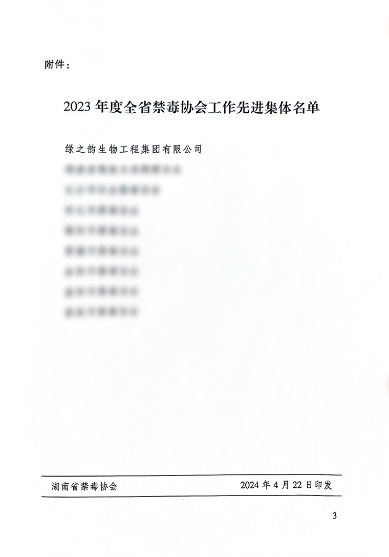 禁絕毒品,人人有責(zé),功在當(dāng)代,利在千秋。綠之韻集團(tuán)黨委書記劉云在工作交流時表示,此次榮獲“2023年度湖南省禁毒協(xié)會工作先進(jìn)集體”,既是一種榮譽,更是一種責(zé)任與使命。綠之韻集團(tuán)作為湖南省禁毒協(xié)會第四屆理事會副會長單位,將充分發(fā)揮主人翁作用,在樹立企業(yè)自身良好形象的同時,積極引導(dǎo)廣大人民群眾自覺提高禁毒、防毒、拒毒的意識,不遺余力地參與省禁毒協(xié)會的各項宣傳工作,為加快建設(shè)法治湖南、平安湖南,為國家富強、民族振興、人民幸福奉獻(xiàn)自己的力量。