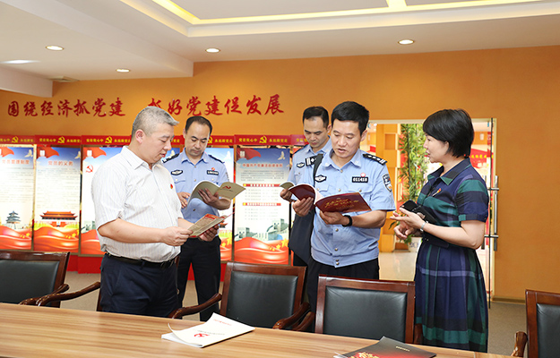 2019年6月28日,長(zhǎng)沙市公安局機(jī)關(guān)紀(jì)委書記王海清、瀏陽(yáng)市局督察大隊(duì)副大隊(duì)長(zhǎng)尋延亮、瀏陽(yáng)經(jīng)開區(qū)公安分局副局長(zhǎng)彭治國(guó)、瀏陽(yáng)市洞陽(yáng)派出所所長(zhǎng)朱慶超一行蒞臨綠之韻集團(tuán)調(diào)研指導(dǎo)。長(zhǎng)沙市公安局特邀形象監(jiān)督員、綠之韻集團(tuán)副總裁胡均安,綠之韻集團(tuán)黨委書記劉云,黨委副書記許達(dá)仲等陪同調(diào)研。