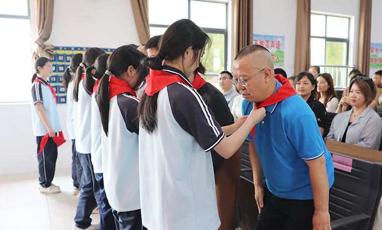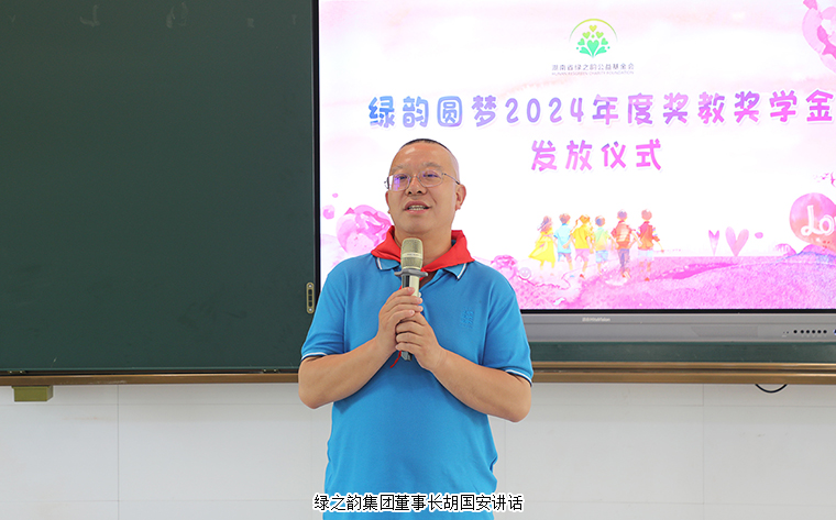 “時隔幾十年,再次戴上鮮艷的紅領巾,我感到十分光榮?!本G之韻集團董事長胡國安深情地說,“我也是從大山里走出來的人,通過讀書、上學,然后工作、堅持創(chuàng)業(yè)改變命運,然后又回到家鄉(xiāng)、建設家鄉(xiāng)。我相信我現(xiàn)在走過的路,在座的每一位同學未來也會和我一樣走過?!倍嗄陙?,綠之韻集團始終堅持把公益事業(yè)上升到企業(yè)發(fā)展戰(zhàn)略高度。先后在全國各地援建了11所希望學校,投入300萬元在全國各地開展“綠韻圓夢?書香助學”活動,陸續(xù)投入1000萬元開展“樹人行動”,投入1000萬元設立“圓夢基金”持續(xù)開展綠韻圓夢行動……累計向社會捐贈款物8600多萬元。2023年,綠之韻在安化大橋學校設立專項獎學金,給予那些品學兼優(yōu)的學生和辛苦耕耘的老師更多鼓勵和學習的機會?!吧倌陱妱t國強,青少年是祖國的希望與未來。今年是發(fā)放獎教獎學金的第二年,未來,我們還希望影響和帶動更多有愛心的人士參與到捐資助學行動中來,幫助青少年健康成長,為安化教育事業(yè)高質量發(fā)展作出積極貢獻。我也希望在座的每一位青年的學生都通過自己的努力,實現(xiàn)自己的人生夢想,回報家鄉(xiāng)、回報社會,建設美麗富饒新安化。”