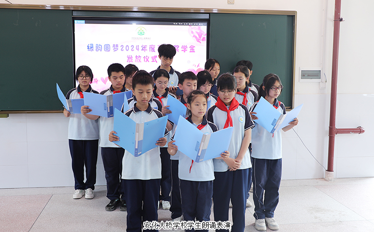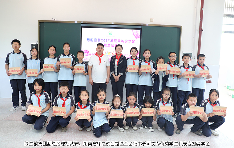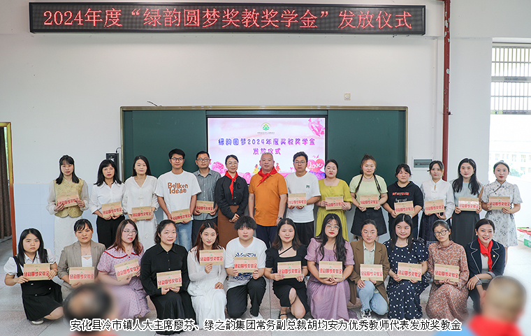 為營造濃厚的關心人才、尊重人才、支持人才以及愛學、勤學、好學、比學的濃厚氛圍,湖南省綠之韻公益基金會捐贈50萬元愛心資金用于在安化大橋學校設立“獎教獎學金”,連續(xù)五年每年向學校捐贈10萬元開展獎學獎教活動,支持鄉(xiāng)村振興文化建設和教育事業(yè)發(fā)展。2024年5月23日,“綠韻圓夢獎教獎學金”發(fā)放儀式活動再次走進安化大橋學校。