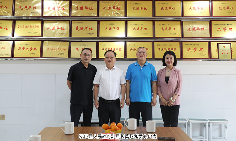 活動最后,安化縣人民政府黨組成員、副縣長莫超講話。他首先代表安化縣委、縣政府向胡國安董事長情系家鄉(xiāng)、造福桑梓的善行義舉給予了高度贊揚。他表示,胡國安董事長及團隊始終在回報桑梓、捐資助學上不遺余力,詮釋了企業(yè)家應有的責任和擔當。他提出了3個關鍵詞,一是感恩,“綠葉不會忘記根的情”。希望學生們常懷感恩之心,勿忘父母師長,牢記愛心企業(yè)、社會國家的教育和幫助,關注公益事業(yè),以優(yōu)異的成績和實際行動去回饋社會、感恩社會。二是驕傲,獎教獎學金的發(fā)放,是對每一位老師和學生成績和付出的肯定,我們要始終保持積極、樂觀的態(tài)度去走好每一步人生路,用辛勤努力去改變自己的命運。三是奮斗,希望所有的同學們都能以胡國安董事長這樣的優(yōu)秀的鄉(xiāng)賢為榜樣,爭做“有志向、有夢想,愛學習、愛勞動,懂感恩、懂友善,敢創(chuàng)新、敢奮斗,德智體美勞全面發(fā)展的好少年”!