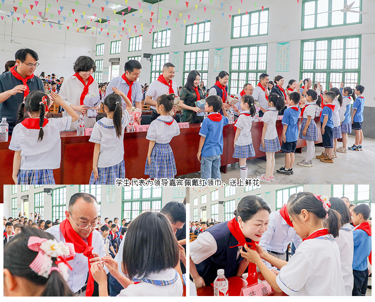 活動中,瀏陽市鎮(zhèn)頭鎮(zhèn)揚眉中學(xué)黨支部書記、校長萬錦春帶領(lǐng)領(lǐng)導(dǎo)嘉賓參觀了學(xué)?;A(chǔ)設(shè)施建設(shè)和特色教室,并對學(xué)校的發(fā)展和辦學(xué)理念進行了詳細介紹。暖暖愛心,點亮希望之星;片片真情,托起明日朝陽。在激昂振奮的曲調(diào)中,揚眉中學(xué)少年宮管樂團器樂合奏了一首《不忘初心》,表現(xiàn)出少年兒童向真、向善、向美、向上的精神風(fēng)貌。隨后,學(xué)生代表向參加本次捐贈活動的嘉賓和領(lǐng)導(dǎo)們敬獻紅領(lǐng)巾和鮮花,用最質(zhì)樸的行動向所有愛心人士表達了誠摯的感謝。