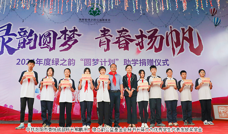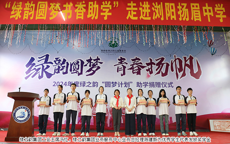 為貫徹落實習(xí)近平新時代中國特色社會主義思想主題教育,鞏固教育脫貧攻堅成果,優(yōu)化教育資源配置,營造濃厚的愛學(xué)、勤學(xué)、好學(xué)、比學(xué)氛圍,2024年5月30日,湖南省綠之韻公益基金會“綠韻圓夢行動”走進瀏陽市鎮(zhèn)頭鎮(zhèn)揚眉中學(xué),捐贈20萬元愛心資金用于少年宮建設(shè)及學(xué)校獎學(xué)獎教活動。中共瀏陽市委統(tǒng)戰(zhàn)部常務(wù)副部長焦清平,致公黨瀏陽工委主委、瀏陽市科技局局長鄧恩,中共瀏陽市鎮(zhèn)頭鎮(zhèn)黨委副書記肖友偉,瀏陽市鎮(zhèn)頭鎮(zhèn)教育發(fā)展中心黨總支書記、主任陳元林,瀏陽市鎮(zhèn)頭鎮(zhèn)揚眉中學(xué)黨支部書記、校長萬錦春,綠之韻集團總裁、湖南省綠之韻公益基金會理事長勞嘉,綠之韻集團黨委書記劉云,綠之韻集團工會主席馮紅,湖南省綠之韻公益基金會秘書長蔣文,綠之韻集團業(yè)務(wù)服務(wù)中心業(yè)務(wù)總經(jīng)理陳建新等領(lǐng)導(dǎo)嘉賓參加活動。