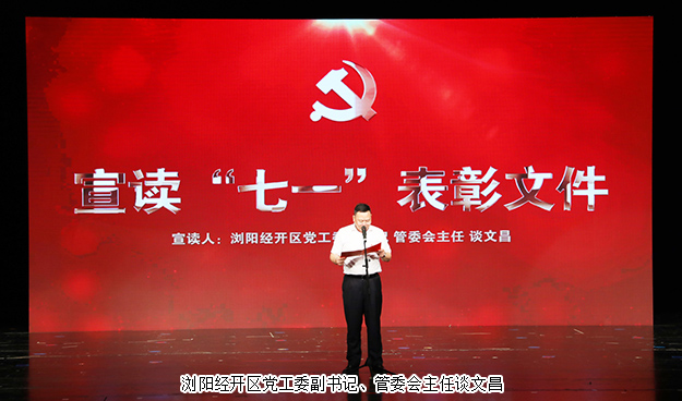 2019年6月27日,瀏陽經(jīng)開區(qū)黨工委在瀏陽金陽文化藝術(shù)中心召開2019年“七一”表彰大會。瀏陽經(jīng)開區(qū)黨工委書記郭力夫,瀏陽經(jīng)開區(qū)黨工委副書記、管委會主任談文昌以及全體黨委領(lǐng)導(dǎo)、機關(guān)黨員、非公經(jīng)濟黨組織負責人、優(yōu)秀黨員和2019年度新發(fā)展的預(yù)備黨員參加會議。綠之韻集團黨委書記劉云、黨委副書記許達仲帶領(lǐng)集團優(yōu)秀黨務(wù)工作者、優(yōu)秀黨員、預(yù)備黨員參加會議。