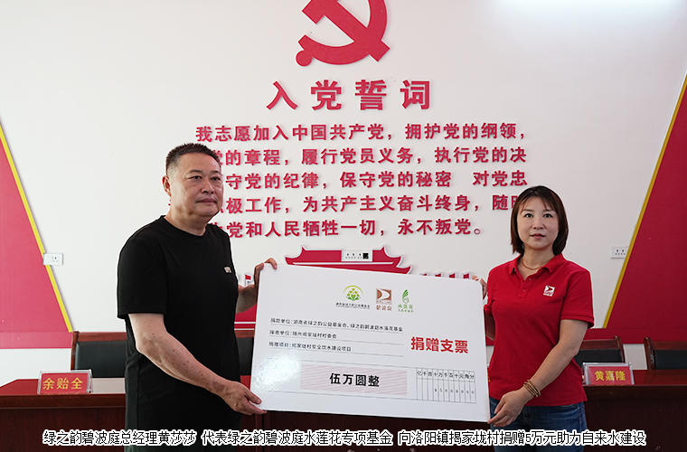 2024年6月12日,綠之韻碧波庭助力落后地區(qū)鄉(xiāng)村自來水建設(shè)暨慰問當(dāng)?shù)乩щy群眾活動,走進(jìn)隨州市曾都區(qū)洛陽鎮(zhèn)揭家垅村。此次公益活動,綠之韻碧波庭水蓮花專項基金捐贈5萬元善款用于自來水建設(shè),并向當(dāng)?shù)乩щy戶捐贈愛心慰問金和生活物資。