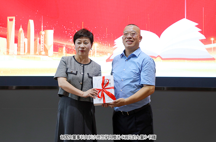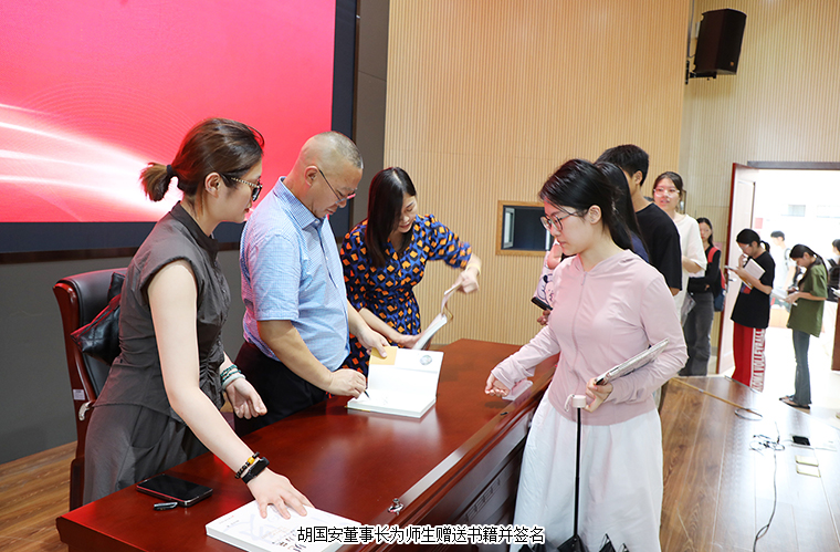 隨后,胡國(guó)安董事長(zhǎng)向長(zhǎng)沙師范學(xué)院贈(zèng)送《洞見(jiàn)的力量》書(shū)籍,校方代表接收贈(zèng)書(shū)并向胡國(guó)安先生頒發(fā)證書(shū)。講座結(jié)束后,胡國(guó)安董事長(zhǎng)現(xiàn)場(chǎng)向師范學(xué)院的學(xué)子們簽名贈(zèng)送了其著作《洞見(jiàn)的力量》,同學(xué)們興奮不已,紛紛要求與其合影留念,書(shū)籍的傳遞更象征著文化的傳承。
