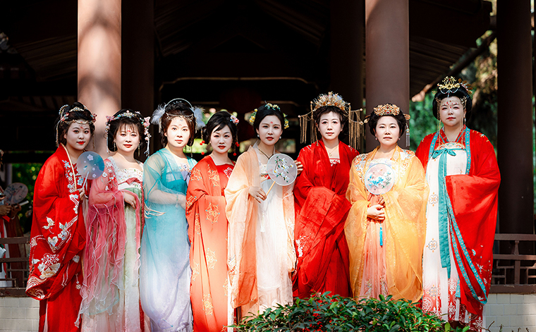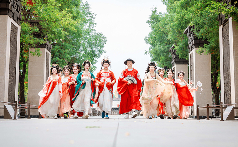 衣襟華服逍遙仙,恍然一夢已千年。綠之韻家人們著華貴衣袍,盡顯風(fēng)度翩翩;穿錦繡羅裳,更添溫婉典雅,悠游于古香氤氳的長安十二時(shí)辰特色街區(qū),恍如穿越時(shí)光的大唐王子公主,來一場酣暢淋漓的唐朝之旅;隨后,家人們暢游佛教文化主題園林大慈恩寺遺址公園,在攝影師的鏡頭下,穿越的千年古韻和文化自信在這一刻得以圓滿;夜幕降臨,華燈初上,繁華喧鬧的大唐不夜城在每日的璀璨燈火中被叫醒。娥眉淡掃,羅扇輕搖,博襟廣袖,衣袂飄飄,步行街上隨處可見盛唐景象,綠之韻家人們著漢服行走在街巷中,仿佛穿越回開放包容、繁榮昌盛的大唐盛世,一路歡歌笑語,一張張美照,將這份美好定格。