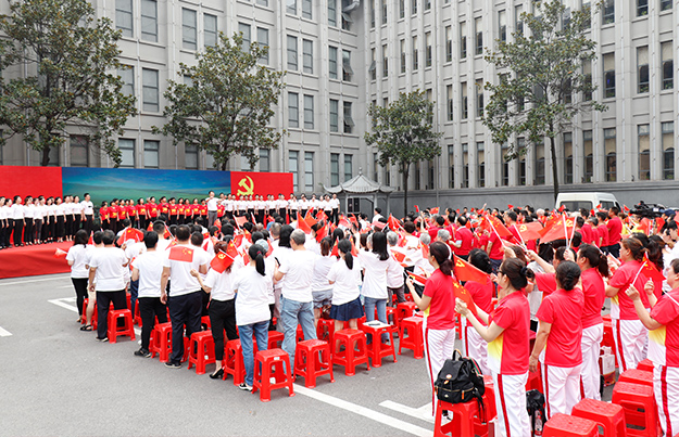 新中國(guó)成立70年來(lái),中國(guó)人民在中國(guó)共產(chǎn)黨領(lǐng)導(dǎo)下浩然前行,書寫了一部感天動(dòng)地的奮斗史詩(shī)。70年風(fēng)云激蕩,中華民族迎來(lái)了從站起來(lái)、富起來(lái)到強(qiáng)起來(lái)的偉大飛躍,正昂首闊步走在實(shí)現(xiàn)中華民族偉大復(fù)興中國(guó)夢(mèng)的征途上。歷史見證了新中國(guó)的滄桑巨變,亦承載著接續(xù)前行的寶貴經(jīng)驗(yàn)與迎接未來(lái)的光明希望。此次活動(dòng)以戶外黨課教育與紅色歌舞相結(jié)合的創(chuàng)新形式,聯(lián)動(dòng)駐地區(qū)域內(nèi)的所有黨建兄弟單位及所轄黨員、群眾,進(jìn)一步接受紅色洗禮,不忘初心跟黨走,追夢(mèng)奮進(jìn)新時(shí)代。