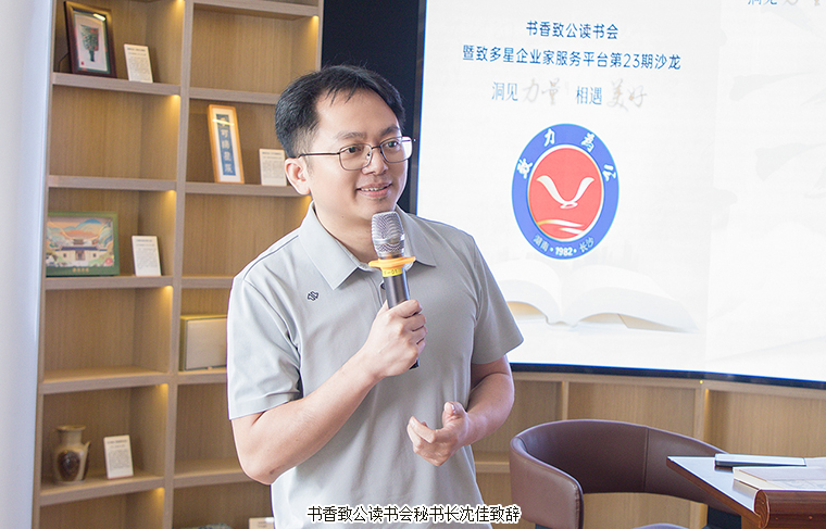 2024年7月19日,在深入貫徹習近平總書記關于文化自信和文化傳承的重要指示精神下,由長沙市政協(xié)、致公黨長沙市委會聯(lián)合指導,致公黨長沙市委會書香致公讀書會及“致多星”企業(yè)家服務平臺主辦,綠之韻集團、致公黨長沙市委會開福區(qū)工委、雨花區(qū)工委、岳麓區(qū)工委、望城總支部、大澤湖海歸小鎮(zhèn)致公聯(lián)合界別政協(xié)委員工作室共同協(xié)辦的以“洞見力量·相遇美好”為主題的書香致公讀書分享會暨“致多星”企業(yè)家服務平臺第23期沙龍活動在長沙成功舉辦。