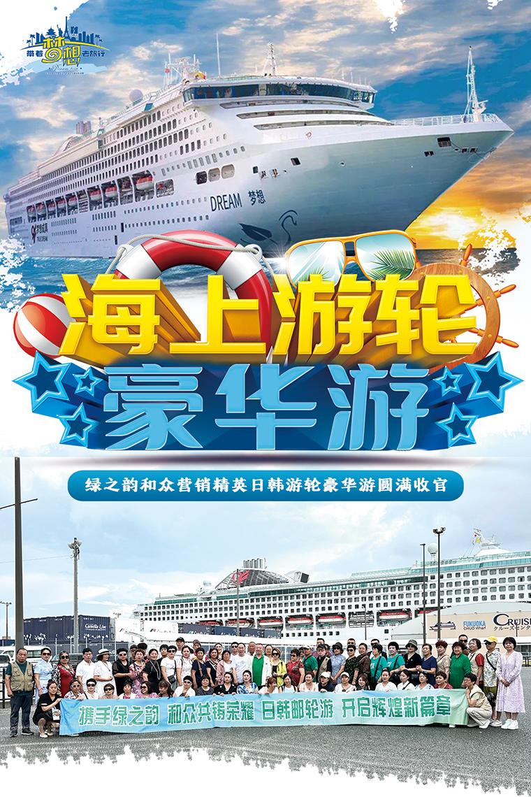 2024年8月23日—28日,綠之韻和眾精英日韓游輪豪華游在綠之韻集團(tuán)常務(wù)副總裁胡均安、策略委員孫彩虹等領(lǐng)導(dǎo)的帶領(lǐng)下乘坐夢(mèng)想號(hào)郵輪從天津港出發(fā),開啟了六天五晚的奇妙之旅。