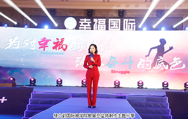 “綠色的信念在燃燒,綠色的愛(ài)在環(huán)繞;讓我的陪伴,成為依靠,為了你的幸?!痹谝黄ぐ旱臉?lè)曲聲中,全場(chǎng)齊聲合唱綠之韻幸福國(guó)際主題曲《為了你的幸?!贰kS后,綠之韻國(guó)際商學(xué)院教育總監(jiān)陳敏作《幸福的力量》主題演講,從新零售的角度進(jìn)一步向綠之韻家人們闡述綠之韻幸福國(guó)際的核心價(jià)值體系、技術(shù)領(lǐng)先優(yōu)勢(shì)、市場(chǎng)經(jīng)營(yíng)策略和未來(lái)發(fā)展規(guī)劃。
