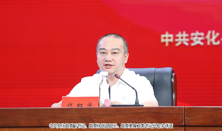 會(huì)上,中共安化縣委副書(shū)記、縣委統(tǒng)戰(zhàn)部部長(zhǎng)、縣委教育工委書(shū)記代虹宇指出,要深刻認(rèn)識(shí)教育事業(yè)發(fā)展的重大意義,勇于擔(dān)當(dāng)教育事業(yè)和教師職業(yè)承載的時(shí)代使命,奮力推動(dòng)安化教育事業(yè)高質(zhì)量發(fā)展。全縣廣大教育工作者要按照習(xí)近平總書(shū)記提出的“四有好老師”“四個(gè)引路人”“四個(gè)相統(tǒng)一”等殷切期望和明確要求,大力弘揚(yáng)教育家精神,做新時(shí)代“大先生”,在教育教學(xué)實(shí)踐中引導(dǎo)安化莘莘學(xué)子爭(zhēng)做有理想、敢擔(dān)當(dāng)、能吃苦、肯奮斗的新時(shí)代好少年。全縣各級(jí)黨委、政府要將教育擺在經(jīng)濟(jì)社會(huì)發(fā)展的優(yōu)先位置,完善立德樹(shù)人機(jī)制,健全師德師風(fēng)建設(shè)長(zhǎng)效機(jī)制,在擴(kuò)寬教師培養(yǎng)路徑、保障教師地位待遇上下功夫,深化教育綜合改革,努力提升教師教書(shū)育人能力,持續(xù)樹(shù)立“黨以重教為先,政以興教為本,民以助教為樂(lè),師以從教為榮”的良好風(fēng)尚,加快推進(jìn)教育強(qiáng)縣建設(shè)。