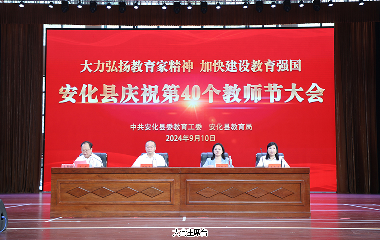 2024年9月10日,安化縣慶祝第40個(gè)教師節(jié)大會(huì)在縣職業(yè)中專舉行。中共安化縣委副書(shū)記、縣委統(tǒng)戰(zhàn)部部長(zhǎng)、縣委教育工委書(shū)記代虹宇,安化縣人大常委會(huì)副主任李艷云,縣人民政府黨組成員、副縣長(zhǎng)莫超,縣政協(xié)副主席陳賽男等領(lǐng)導(dǎo)出席會(huì)議。安化縣人大代表,綠之韻集團(tuán)常務(wù)副總裁胡均安受邀參加會(huì)議,并榮獲“安化縣尊師重教獎(jiǎng)”。