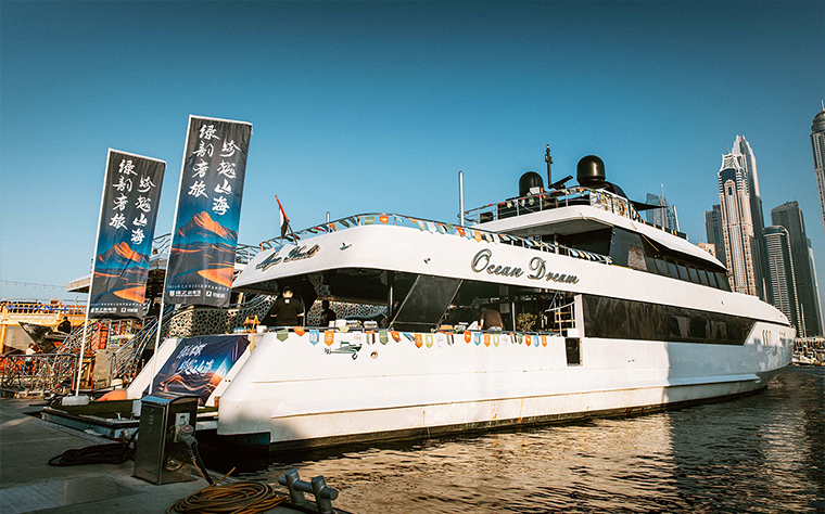 傍晚,綠之韻家人們乘坐豪華游艇置身于阿拉伯海灣的懷抱中,欣賞迪拜獨(dú)特的天際線和帆船酒店、哈利法塔等標(biāo)志性建筑。家人們?cè)谟瓮舷硎苊朗?,歡歌縱舞,不論是白天陽光下的湛藍(lán)海水,日落時(shí)分的金色余暉,還是夜晚華燈初上的璀璨城市,每一刻都展現(xiàn)出迪拜無與倫比的魅力。
