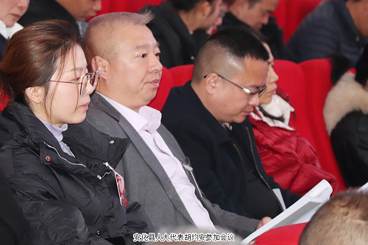 安化大劇院內(nèi)氣氛莊重?zé)崃?,主席臺帷幕正中的國徽在鮮艷的紅旗映襯下熠熠生輝。上午8點30分,大會在莊嚴(yán)的國歌聲中開幕。開幕大會由安化縣人大常委會主任陳飛燕主持。本次大會執(zhí)行主席由陳飛燕、(以下按姓氏筆畫為序)王定巖、鄧群林、石錄明、龍要平、盧映云、代虹宇、劉斌、劉百戰(zhàn)、劉建輝、李志生、李艷云、羅偉民、 胡能華、胡能新、鐘曙波、曹石多、潘文劍擔(dān)任。安化縣領(lǐng)導(dǎo)魯志堅、李德輝、謝可贊、廖小甫、郭環(huán)球、楊正華等在主席臺就座。大會應(yīng)到代表340人,實到313人,因事因病請假27人,符合法定人數(shù)。安化縣人大代表、益陽市工商聯(lián)(總商會)副會長、綠之韻集團(tuán)常務(wù)副總裁胡均安參加大會。