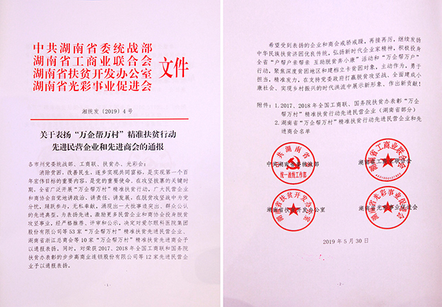 戶幫戶親幫親,互助脫貧奔小康。2019年6月4日,湖南省“萬企幫萬村”精準(zhǔn)扶貧行動先進(jìn)表揚(yáng)暨“萬企幫萬戶”行動動員大會在長沙召開。中共湖南省委常委、統(tǒng)戰(zhàn)部部長黃蘭香,湖南省政協(xié)副主席、省工商聯(lián)主席張健,中共湖南省委副秘書長秦國文,中共湖南省委統(tǒng)戰(zhàn)部常務(wù)副部長譚平,中共湖南省委統(tǒng)戰(zhàn)部副部長、省工商聯(lián)黨組書記陳瀟等領(lǐng)導(dǎo)出席會議。
