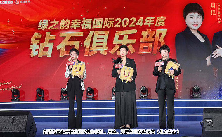 璀璨鉆石,如耀眼星辰,綻放光芒萬丈。鉆石的光輝,映照著他們無畏無懼、奮勇向前的堅(jiān)毅身影;熠熠華彩,照亮了奮進(jìn)的拼搏征程。他(她)們,作為萬千幸福代言人的榜樣,已然成為幸福國(guó)際蓬勃發(fā)展的中堅(jiān)力量,更是驅(qū)動(dòng)市場(chǎng)滾滾向前的磅礴力量。綠之韻集團(tuán)總裁勞嘉,幸福國(guó)際市場(chǎng)商學(xué)院特聘教授、綠韻悅喜智能科技有限公司首席研發(fā)專家駱春崗,綠韻悅喜智能科技有限公司總經(jīng)理?xiàng)钚宪帲G之韻幸福國(guó)際市場(chǎng)商學(xué)院執(zhí)行院長(zhǎng)廖鵬,綠之韻幸福國(guó)際市場(chǎng)商學(xué)院副院長(zhǎng)袁夢(mèng)分別為2024年度新晉一星、二星、三星鉆石俱樂部成員頒發(fā)榮耀勛章。獲獎(jiǎng)代表周艷、洪霞、朱秋蘭,滿懷激動(dòng)與感恩,依次分享獲獎(jiǎng)感言。