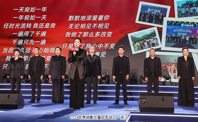 于灼灼目光的交匯中采擷奮進(jìn)力量,讓矢志不渝的初心仿若熠熠星辰,恒暖不熄。他(她)們無畏無懼地在市場(chǎng)馳騁,盡情揮灑光與熱,宛如璀璨星辰照亮逐夢(mèng)征途。各戰(zhàn)區(qū)凝心聚力,同頻共振,以硬核之姿毅然出征,活力澎湃四溢,傾盡全力拼搏奮進(jìn)。綠之韻集團(tuán)總裁勞嘉,常務(wù)副總裁胡均安,副總裁、幸福導(dǎo)師夏運(yùn)良,市場(chǎng)營(yíng)銷中心總經(jīng)理戴三省、國(guó)際商學(xué)院執(zhí)行院長(zhǎng)黎芋成分別為“2024年度銷售總冠軍浙江戰(zhàn)區(qū)”“2024年度銷售增長(zhǎng)總量冠軍廣東戰(zhàn)區(qū)”“2024年度銷售增長(zhǎng)率冠軍四川戰(zhàn)區(qū)”頒發(fā)榮譽(yù)。