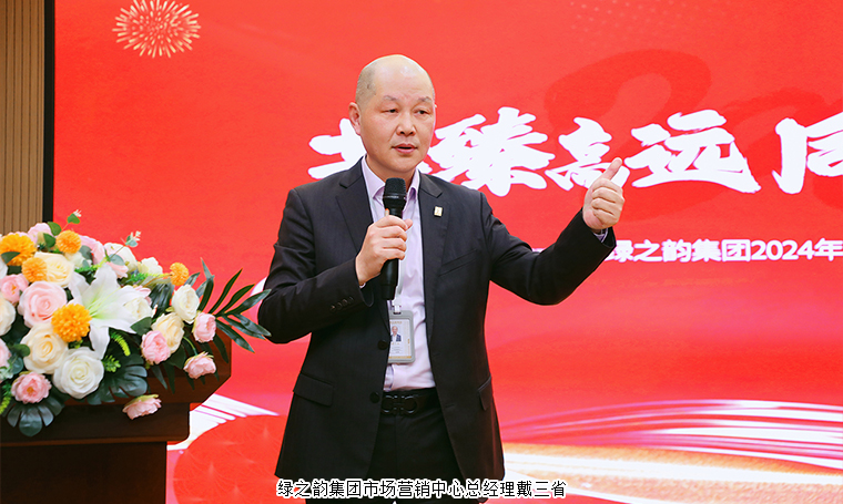 隨后,綠之韻集團(tuán)常務(wù)副總裁胡均安發(fā)表致辭。他表示,2024年,是綠之韻第五個(gè)五年規(guī)劃的關(guān)鍵之年,市場(chǎng)是關(guān)鍵中的關(guān)鍵。每一份成績(jī)的背后,是我們產(chǎn)品和服務(wù)的質(zhì)量,是我們不懼挑戰(zhàn)和奮力拼搏的能量,是我們市場(chǎng)部門(mén)和業(yè)務(wù)支持部門(mén)的力量,也是我們汗水和夢(mèng)想的重量。新的一年,綠之韻中心的即將投入使用,意味著新的工作環(huán)境、新的行為規(guī)范、新的企業(yè)形象、新的目標(biāo)規(guī)劃。期望全體員工盡我所能,敬我不能,在思想上充好電,在形象上練好功,在行動(dòng)上提好速,在工作上聚好力,以全新的面貌和必勝的信心迎接新的開(kāi)始,以更加優(yōu)異的業(yè)績(jī),書(shū)寫(xiě)出綠之韻更加輝煌的篇章。