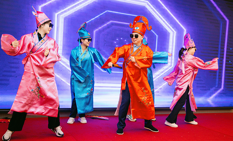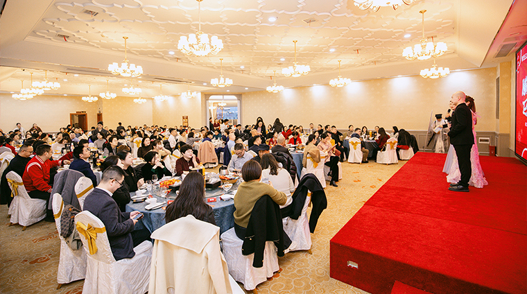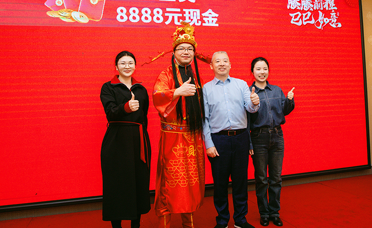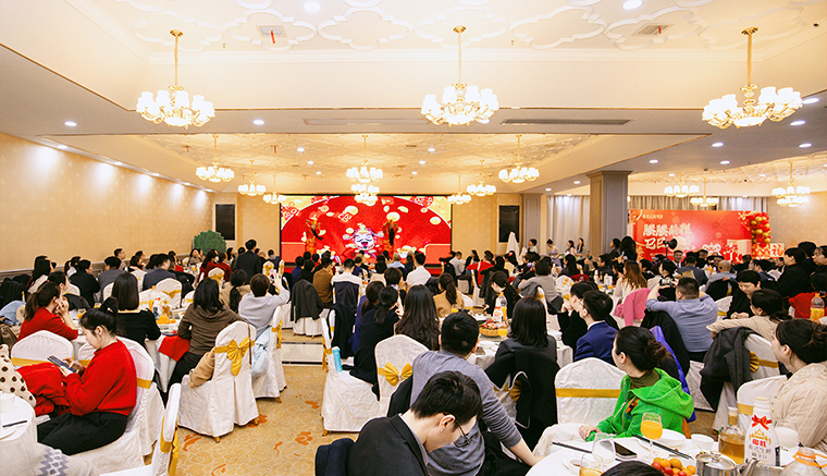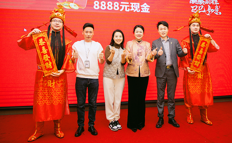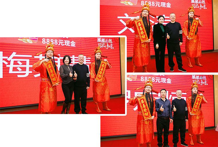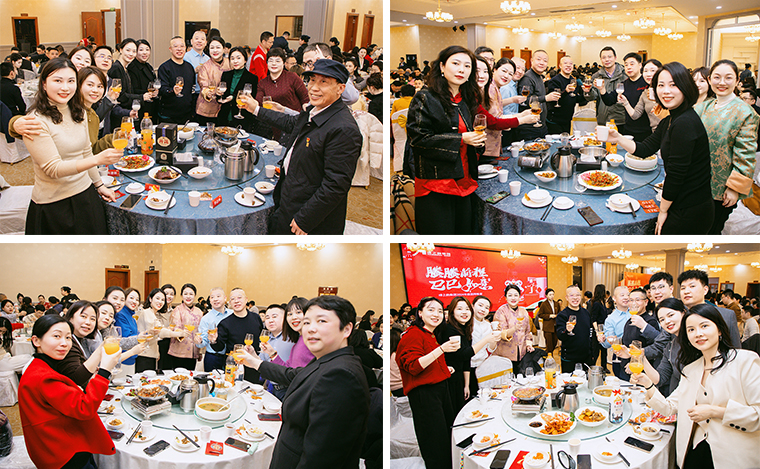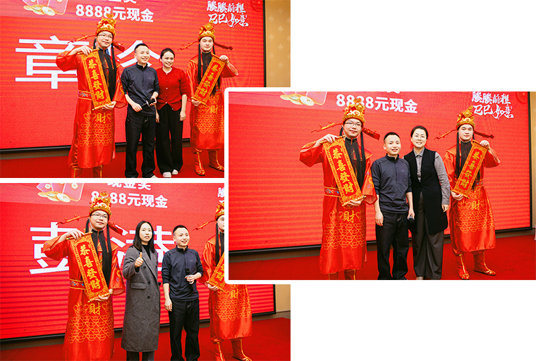 隨后,螣螣前程 巳巳如意——2024年新春團(tuán)拜會(huì)啟幕,瞬間點(diǎn)燃全場(chǎng)激情。舞臺(tái)上,舞者似靈動(dòng)精靈,舞步輕盈,踏響新年節(jié)拍;靈魂歌手一展天籟,歌聲悠揚(yáng),唱響新春樂(lè)章;創(chuàng)意小品,奇思妙想;財(cái)神舞,喜氣洋洋燃爆全場(chǎng);抽獎(jiǎng)環(huán)節(jié)更是將全場(chǎng)氛圍一次次推向高潮,歡呼聲與祝福聲交織,驚喜與歡樂(lè)在會(huì)場(chǎng)四處綻放,每一個(gè)綠之韻人沉浸其中,其樂(lè)融融。最后,全體綠之韻家人舉杯同慶,在這熱鬧非凡的氛圍中,共同憧憬新一年的輝煌。