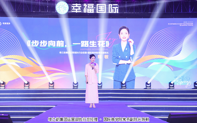大會(huì)在《為了你的幸?!肺璧钢欣_(kāi)序幕。主題視頻回顧了2025年第一季度綠之韻幸福國(guó)際市場(chǎng)家人們的奮斗歷程,展現(xiàn)了綠之韻幸福國(guó)際家人們努力踐行科技賦能中醫(yī)養(yǎng)生的奮斗成果。幸福代言人李美嫻、王瑞平、曹福林分別從成長(zhǎng)、健康、幸福的角度講述了自己的幸福故事。綠之韻集團(tuán)運(yùn)營(yíng)部執(zhí)行總經(jīng)理·國(guó)際商學(xué)院常務(wù)副院長(zhǎng)陳敏以《步步向前·一路生花》為主題,詮釋綠之韻幸福國(guó)際“以產(chǎn)品為導(dǎo)向,以服務(wù)為基石”的理念。