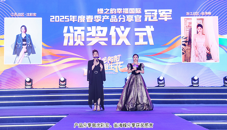 在逐夢(mèng)前行的道路上,他們是勇敢的開(kāi)拓者,以星星之火,點(diǎn)燃分享的熱情。每一次的講述,都傳遞著產(chǎn)品的魅力;每一次的推薦,都凝聚著信任的力量。他們憑借著對(duì)產(chǎn)品的熱愛(ài)與深入了解,用真誠(chéng)的分享打動(dòng)著身邊的每一個(gè)人,為品牌的傳播默默耕耘。大會(huì)為“2025年度產(chǎn)品分享官3冠、4 冠、5 冠”獲獎(jiǎng)?wù)哳C發(fā)榮譽(yù),幸福代言人莊雅玲、呂佳潞分享獲獎(jiǎng)感言。