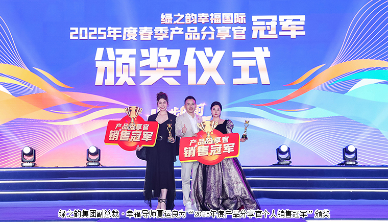 在風(fēng)云變幻的市場(chǎng)上,他們以智慧和汗水書(shū)寫(xiě)銷(xiāo)售傳奇。每一次成功的分享,都是努力的結(jié)晶;每一個(gè)客戶(hù)的認(rèn)可,都是奮斗的勛章。他們用實(shí)力證明,只要心懷夢(mèng)想,全力以赴,就能在舞臺(tái)上綻放最耀眼的光芒。綠之韻集團(tuán)副總裁·幸福導(dǎo)師夏運(yùn)良為“2025年度產(chǎn)品分享官個(gè)人銷(xiāo)售冠軍”的獲得者江蘇戰(zhàn)區(qū)沈彩宏、浙江戰(zhàn)區(qū)翁海峰頒獎(jiǎng)。