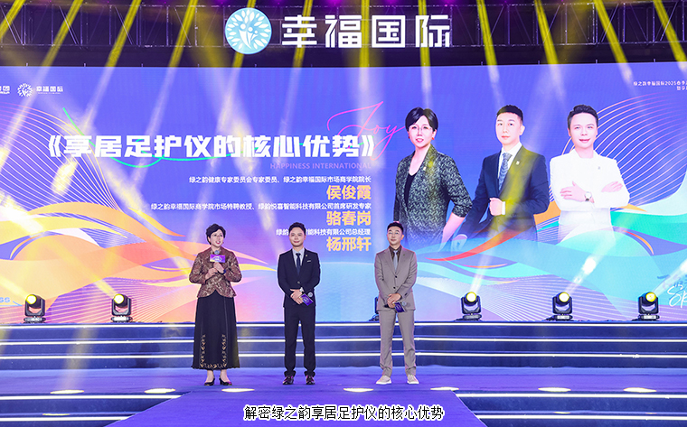 會(huì)上,還舉行了“享居足護(hù)儀”新品上市發(fā)布會(huì)。綠之韻健康專(zhuān)家委員會(huì)專(zhuān)家委員、綠之韻幸福國(guó)際市場(chǎng)商學(xué)院院長(zhǎng)侯俊霞,綠之韻幸福國(guó)際商學(xué)院市場(chǎng)特聘教授、綠韻悅喜智能科技有限公司首席研發(fā)專(zhuān)家駱春崗,綠韻悅喜智能科技有限公司總經(jīng)理?xiàng)钚宪幑餐?jiàn)證由綠之韻幸福國(guó)際自主研發(fā)的、具有核心競(jìng)爭(zhēng)力、高含金量的“拳頭”新品——綠之韻享居足護(hù)儀的震撼發(fā)布,掀起了會(huì)場(chǎng)的高潮。