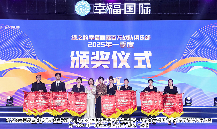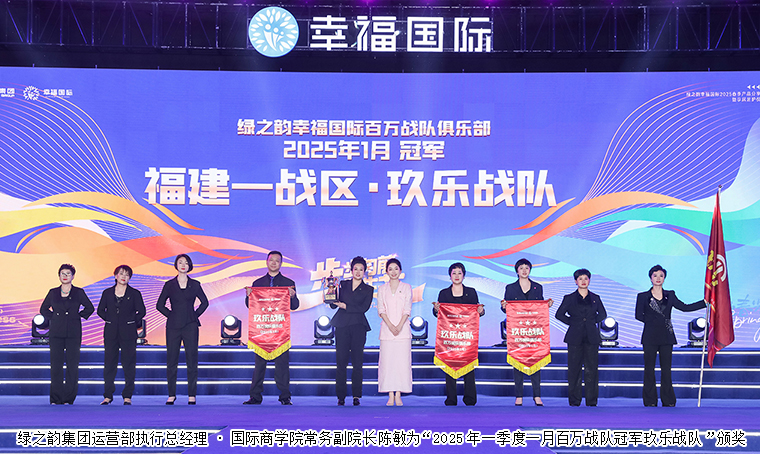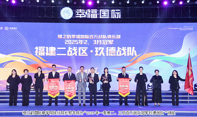 隨后,大會(huì)為2025年第一季度達(dá)成百萬(wàn)業(yè)績(jī)的戰(zhàn)隊(duì)舉行了盛大的頒獎(jiǎng)儀式。綠之韻集團(tuán)市場(chǎng)運(yùn)營(yíng)中心市場(chǎng)業(yè)務(wù)總監(jiān)喻鳴鸞、綠之韻集團(tuán)市場(chǎng)運(yùn)營(yíng)中心區(qū)域業(yè)務(wù)總監(jiān)譚紅為“2025年一季度一月達(dá)成百萬(wàn)戰(zhàn)隊(duì)”頒獎(jiǎng)。綠之韻幸福國(guó)際市場(chǎng)商學(xué)院特聘教授、綠韻悅喜智能科技有限公司首席研發(fā)專(zhuān)家駱春崗,綠韻悅喜智能科技有限公司總經(jīng)理?xiàng)钚宪帪椤?025年一季度二月達(dá)成百萬(wàn)戰(zhàn)隊(duì)”頒獎(jiǎng)。綠之韻集團(tuán)品宣部執(zhí)行總經(jīng)理龍雅鳳,綠之韻健康專(zhuān)家委員會(huì)專(zhuān)家委員、綠之韻幸福國(guó)際市場(chǎng)商學(xué)院院長(zhǎng)侯俊霞為“2025年一季度三月達(dá)成百萬(wàn)戰(zhàn)隊(duì)”頒獎(jiǎng)。綠之韻集團(tuán)運(yùn)營(yíng)部執(zhí)行總經(jīng)理·國(guó)際商學(xué)院常務(wù)副院長(zhǎng)陳敏為“2025年一季度一月百萬(wàn)戰(zhàn)隊(duì)冠軍玖樂(lè)戰(zhàn)隊(duì)”頒獎(jiǎng)。綠之韻國(guó)際商學(xué)院執(zhí)行院長(zhǎng)黎芋成為“2025年一季度二、三月百萬(wàn)戰(zhàn)隊(duì)冠軍玖德戰(zhàn)隊(duì)”頒獎(jiǎng)。隨后,綠之韻國(guó)際商學(xué)院執(zhí)行院長(zhǎng)黎芋成對(duì)綠之韻幸福國(guó)際的核心競(jìng)爭(zhēng)力進(jìn)行了全面解析。