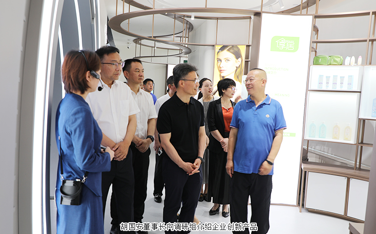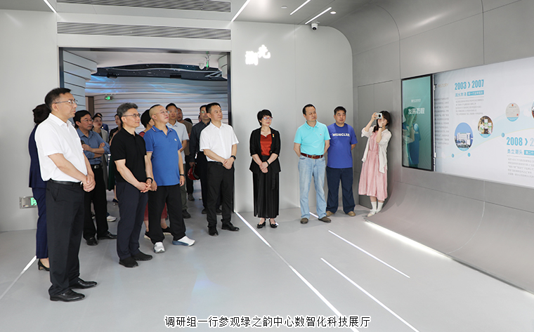 隨后,調(diào)研組一行來到位于綠之韻中心17層的數(shù)智化科技展廳。展廳設(shè)計(jì)深度融入企業(yè) “水之道” 理念,以水的旅程為敘事主線,將企業(yè)初心與情懷貫穿始終,同時(shí)融合 “東哲西技” 概念,展現(xiàn)獨(dú)特的文化底蘊(yùn)。展廳運(yùn)用數(shù)字技術(shù)打造互動(dòng)體驗(yàn),構(gòu)建智慧型新時(shí)代中醫(yī)藥文化展示空間,通過立體空間多維度呈現(xiàn)集團(tuán)企業(yè)文化、發(fā)展歷程、黨建公益、產(chǎn)品理念、科研實(shí)力及未來愿景等內(nèi)容。在參觀過程中,胡國(guó)安董事長(zhǎng)向調(diào)研組詳細(xì)介紹了企業(yè)發(fā)展脈絡(luò),展廳內(nèi)豐富的最新科技成果與創(chuàng)新產(chǎn)品,更是直觀展現(xiàn)了綠之韻在大健康領(lǐng)域的積極探索與階段性成果。
