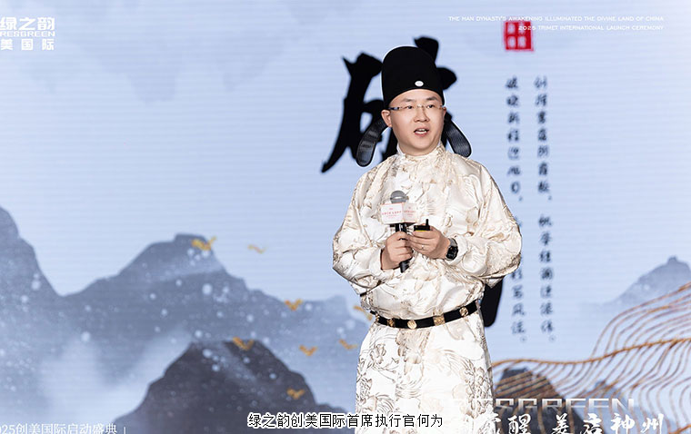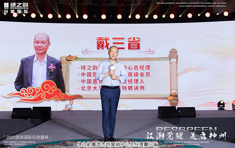 活動伊始,綠之韻集團市場營銷中心總經理戴三省致辭。戴總深入解讀了集團發(fā)展戰(zhàn)略,強調創(chuàng)美國際將深度融合國風文化與大健康產業(yè),以東方美學賦能品牌價值。他表示:“‘漢潮覺醒’不僅是文化回歸,更是產業(yè)升級的契機。我們致力于打造兼具傳統(tǒng)文化底蘊與現代科技的大健康品牌。”