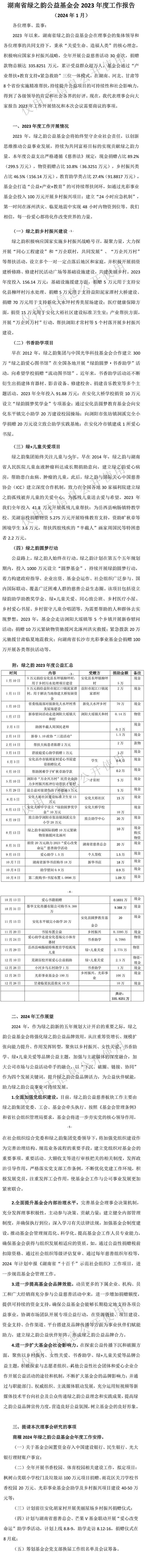 湖南省綠之韻公益基金會2023年度工作報(bào)告