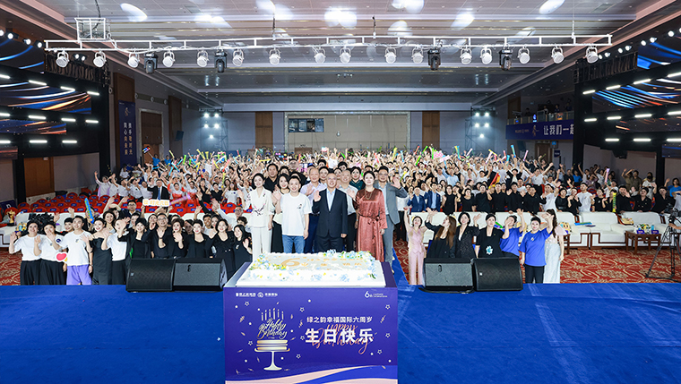 慶典尾聲,《為了你的幸?!返氖煜ば稍俅紊钋轫懫?,在場所有家人們齊聲合唱,生日蛋糕宛若時(shí)光之塔,在搖曳燭光中被緩緩送上舞臺(tái)。全場幸福代言人共同喊出生日祝福:“祝愿綠之韻幸福國際六周年生日快樂!”光影定格,笑臉如花,這是綠之韻幸福國際六周歲最溫暖、最盛大的定格。