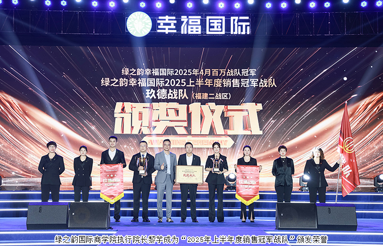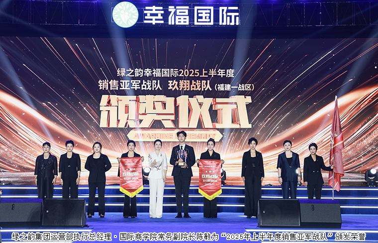 面向浩瀚未來,責(zé)任是啟航的風(fēng)帆。敬未來,是熾熱雙手托舉使命的星辰,是鐵肩擔(dān)當(dāng)筑牢事業(yè)的疆域。綠之韻國際商學(xué)院執(zhí)行院長黎芋成作《敬未來》主題分享,他的話語如戰(zhàn)鼓擂動(dòng),點(diǎn)燃了每一個(gè)幸福代言人心中向新而行的火焰,為家人們帶來了新的思路與啟發(fā)。精彩的分享后,榮耀的光芒再次點(diǎn)亮,綠之韻集團(tuán)常務(wù)副總裁胡均安、綠之韻集團(tuán)市場營銷中心總經(jīng)理戴三省為綠之韻幸福國際“2025上半年度銷售增長率冠軍”江徽戰(zhàn)區(qū)頒發(fā)榮譽(yù);綠之韻集團(tuán)總裁勞嘉、綠之韻國際商學(xué)院執(zhí)行院長黎芋成為“2025上半年度銷售增長總量冠軍”兩湖戰(zhàn)區(qū);綠之韻集團(tuán)總裁勞嘉,綠之韻集團(tuán)運(yùn)營總裁、幸福導(dǎo)師夏運(yùn)良共同為綠之韻幸福國際“2025上半年度銷售總量冠軍”福建一戰(zhàn)區(qū)頒發(fā)榮譽(yù)。
